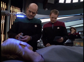 Holodeck - Janeway watches the practice operation in which "Seven" dies